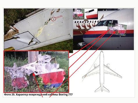 It is also important that the location of the markers on the radar screen to the left of the Boeing’s course correspond with the photos made at the crash site, in which you can clearly see the signs of external action at the left wing and the left side of the Boeing 777 cockpit.
