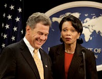 Richard Miles [pictured left], the US ambassador in Belgrade, played a key role. And by last year, as US ambassador in Tbilisi, he repeated the trick in Georgia, coaching Mikhail Saakashvili in how to bring down Eduard Shevardnadze. Ten months after the success in Belgrade, the US ambassador in Minsk, Michael Kozak, a veteran of similar operations in central America, notably in Nicaragua, organized a near identical campaign to try to defeat the Belarus hardman, Alexander Lukashenko.