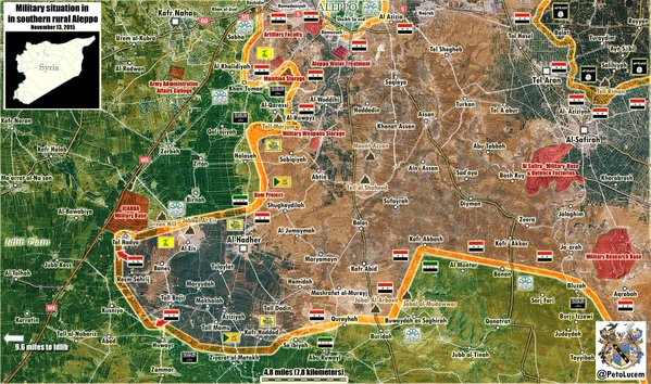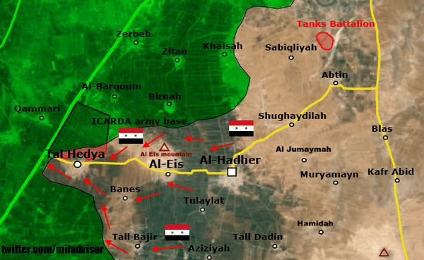 The strategic Aleppo-Idlib highway, the M5, is on the horizon for the Syrian Arab Army just west of Al Hadher. Since the capture of the Keweires airbase in Aleppo, the momentum has not stopped, with various villages being captured: