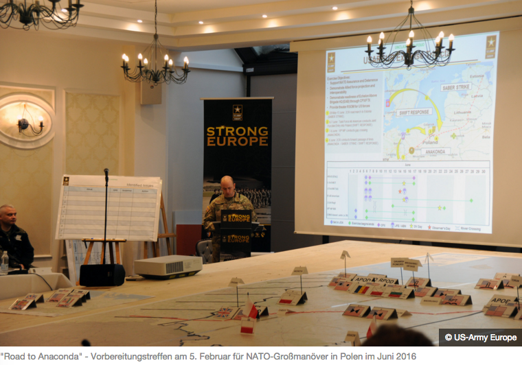 | ‘”Road to ANACONDA” Preparations base for the grand NATO manoeuvres in Poland for June, 2016’ Photo credit: US-Army Europe |