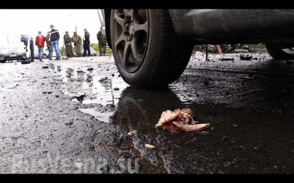 The third car was riddled with shrapnel which, according to OSCE observers, was probably caused by one of the explosions