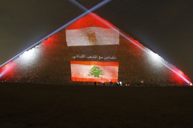 The Great pyramid was painted in the colors of the flags of Russia, France and Lebanon