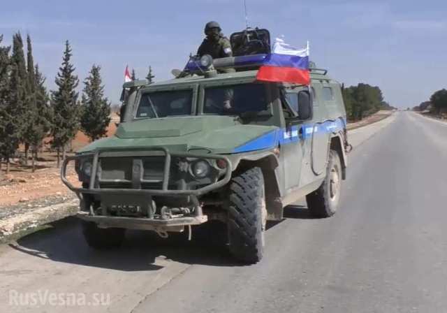 The portal “RusVesna” has obtained an exclusive footage of a village in the Syrian province of Aleppo that is being shelled by the Turkish forces right in the moment as the Russian aid convoy arrives.